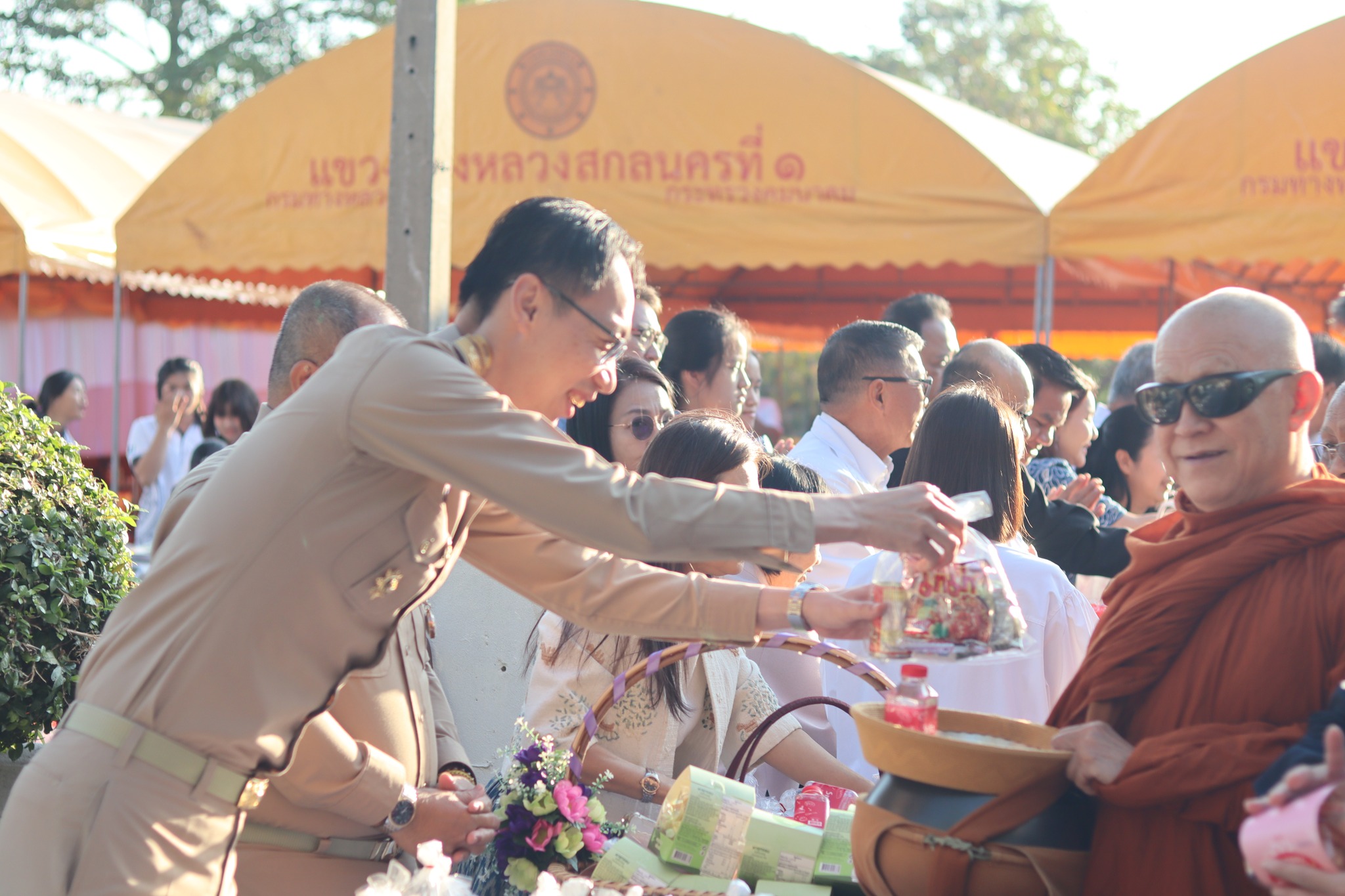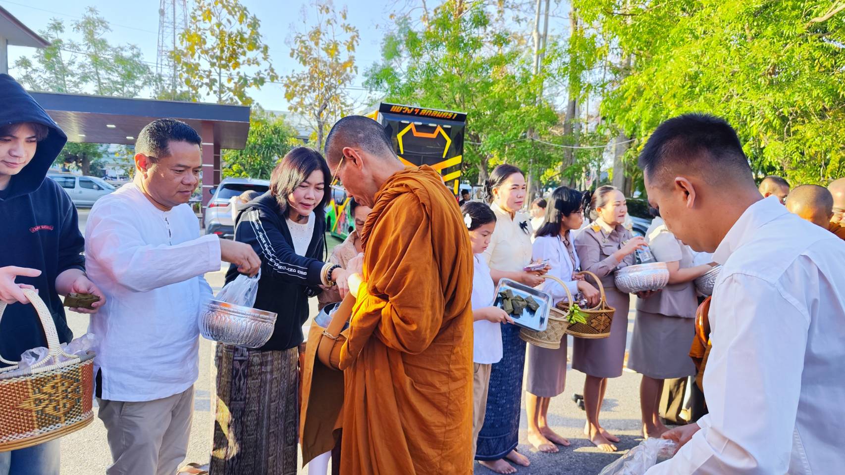 แขวงทางหลวงสกลนครที่ 1 จัดพิธีทำบุญตักบาตรสำนักงานฯ เพื่อสร้างขวัญกำลังใจในการปฏิบัติงานให้แก่ข้าราชการเเละเจ้าหน้าที่ในสังกัด ในการนี้ได้นิมนต์พระสงฆ์มาเจริญพระพุทธมนต์พรมน้ำมนต์ จำนวน 14 รูปดังนี้