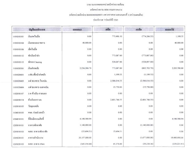 รายงานงบทดลองจากระบบ GFMIS ประจำเดือน ตุลาคม 2565