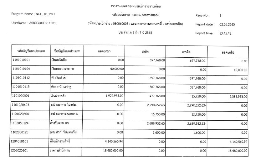 รายงานงบทดลองจากระบบ GFMIS ประจำเดือน กรกฏาคม 2565