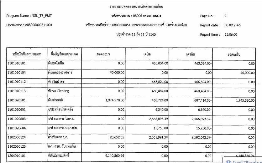 รายงานงบทดลองจากระบบ GFMIS ประจำเดือน พฤศจิกายน 2565