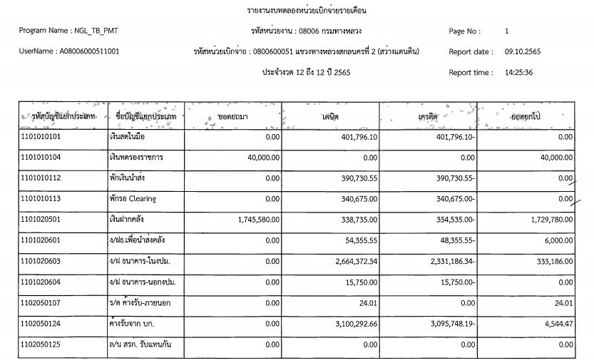 รายงานงบทดลองจากระบบ GFMIS ประจำเดือน กันยายน 2565