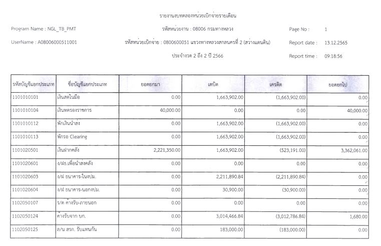 รายงานงบทดลองจากระบบ GFMIS ประจำเดือน กุมภาพันธ์ 2566