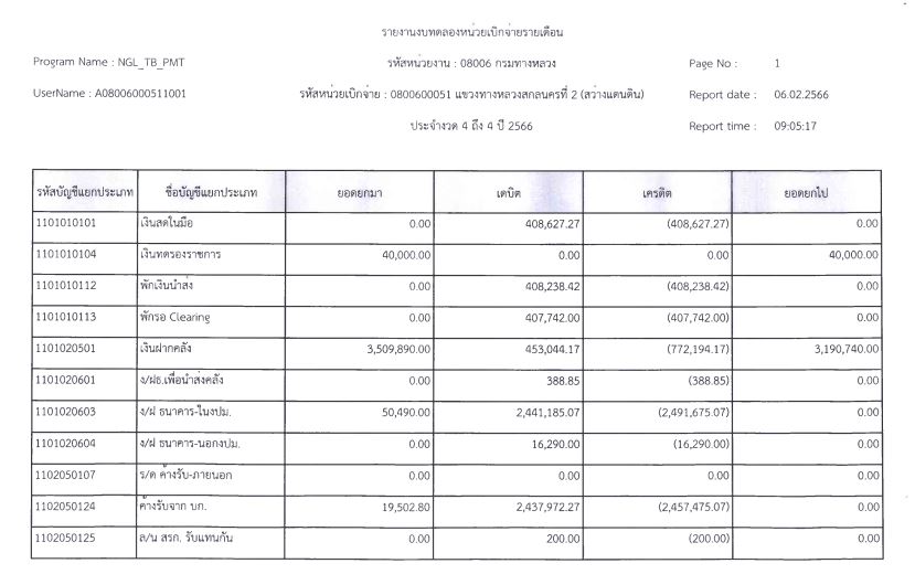 รายงานงบทดลองจากระบบ GFMIS ประจำเดือน มีนาคม 2566