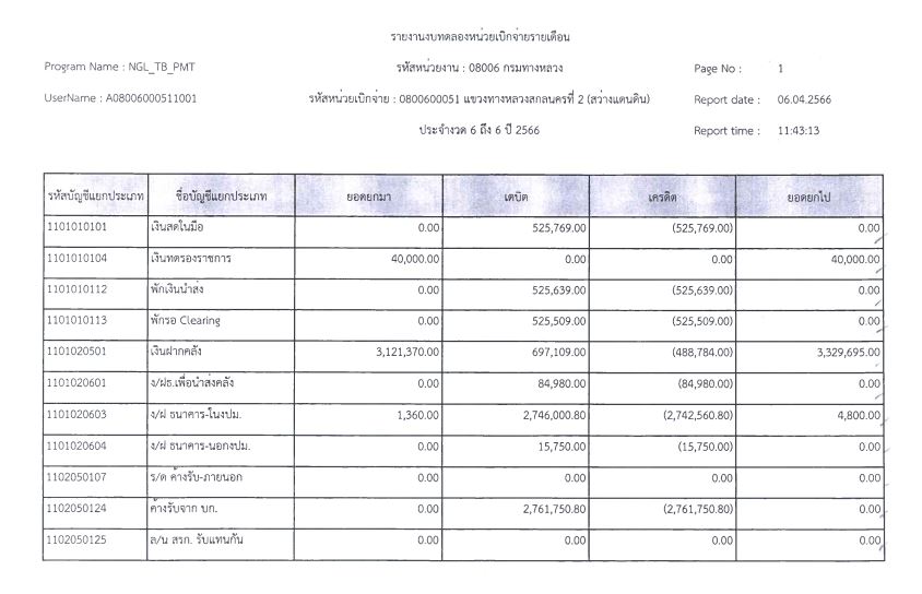 รายงานงบทดลองจากระบบ GFMIS ประจำเดือน มกราคม 2566